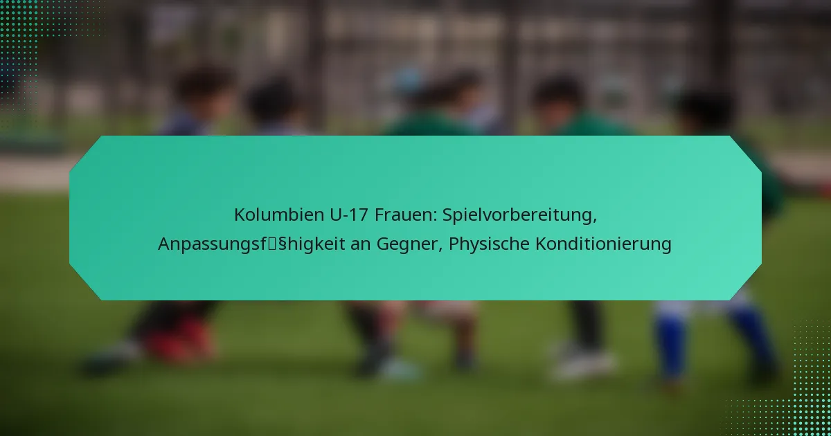Die Spielvorbereitung für die U-17-Frauenmannschaft Kolumbiens umfasst verschiedene Herausforderungen, darunter das Management von Verletzungen, die Anpassung an unterschiedliche Spielstile der Gegner und die Gewährleistung optimaler physischer Konditionierung. Diese Faktoren sind entscheidend für die Aufrechterhaltung der Leistung und der Teamkohäsion während der Wettbewerbe.