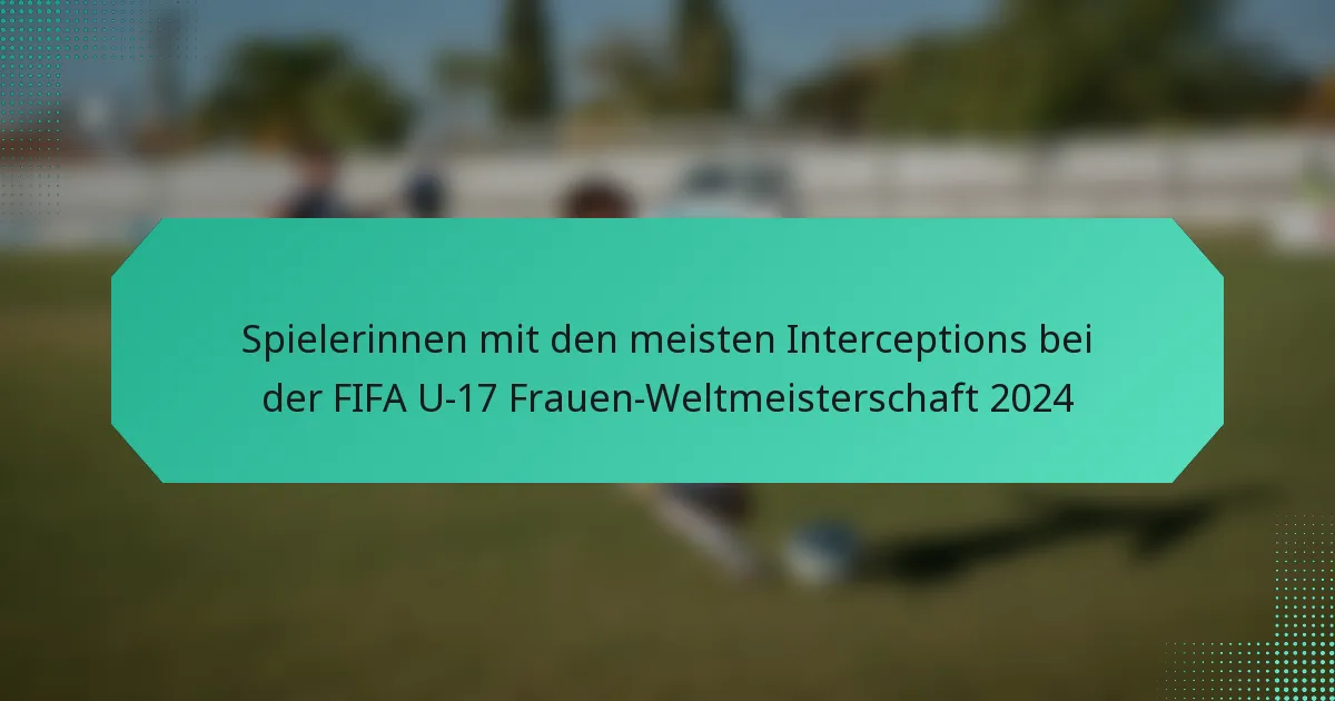 Die FIFA U-17 Frauen-Weltmeisterschaft 2024 hat mehrere Spielerinnen präsentiert, die in defensiven Rollen herausragend sind, insbesondere bei der Durchführung von Interceptions. Diese Spielerinnen haben ihre Fähigkeit unter Beweis gestellt, gegnerische Angriffe zu stören und tragen erheblich zu den defensiven Strategien ihrer Teams bei.