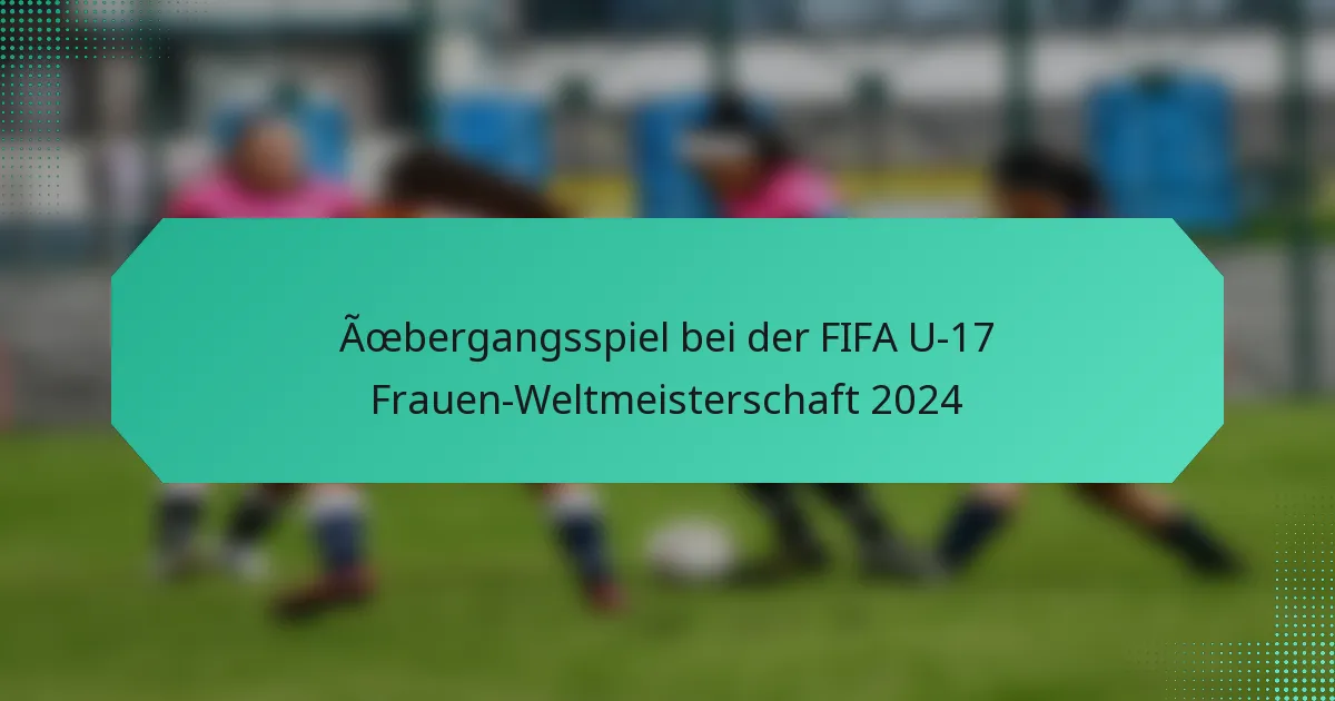 Das Übergangsspiel bei der FIFA U-17-Frauen-Weltmeisterschaft 2024 hebt die Bedeutung schneller Wechsel zwischen Abwehr und Angriff hervor, wodurch Teams die Schwächen ihrer Gegner ausnutzen können. Dieser taktische Ansatz ist entscheidend, um Tormöglichkeiten zu schaffen und defensive Strukturen zu verstärken, was ihn zu einem zentralen Element des Turniers macht. Teams wie die Vereinigten Staaten, Deutschland und Brasilien haben ihre Fähigkeiten bei der Umsetzung effektiver Übergangsstrategien demonstriert und betonen Geschwindigkeit und Effizienz auf dem Spielfeld.